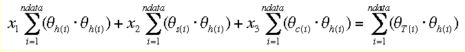 With equation (4) and its analogues for x2 and x3, we have now 3 equations in 3 unknowns, which can be solved. We re-write the derivatives as normal equations (given here for x1 only)