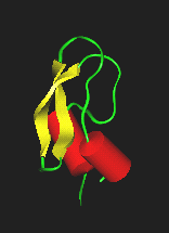 BPTI in space group P 212121This is a real life example for the cell packing in the most common space group for proteins, #19. The model is from our entry 1bpi.pdb, a high resolution structure of Bovine Pancreatic Trypsin Inhibitor. The protein has been used a lot in folding studies.